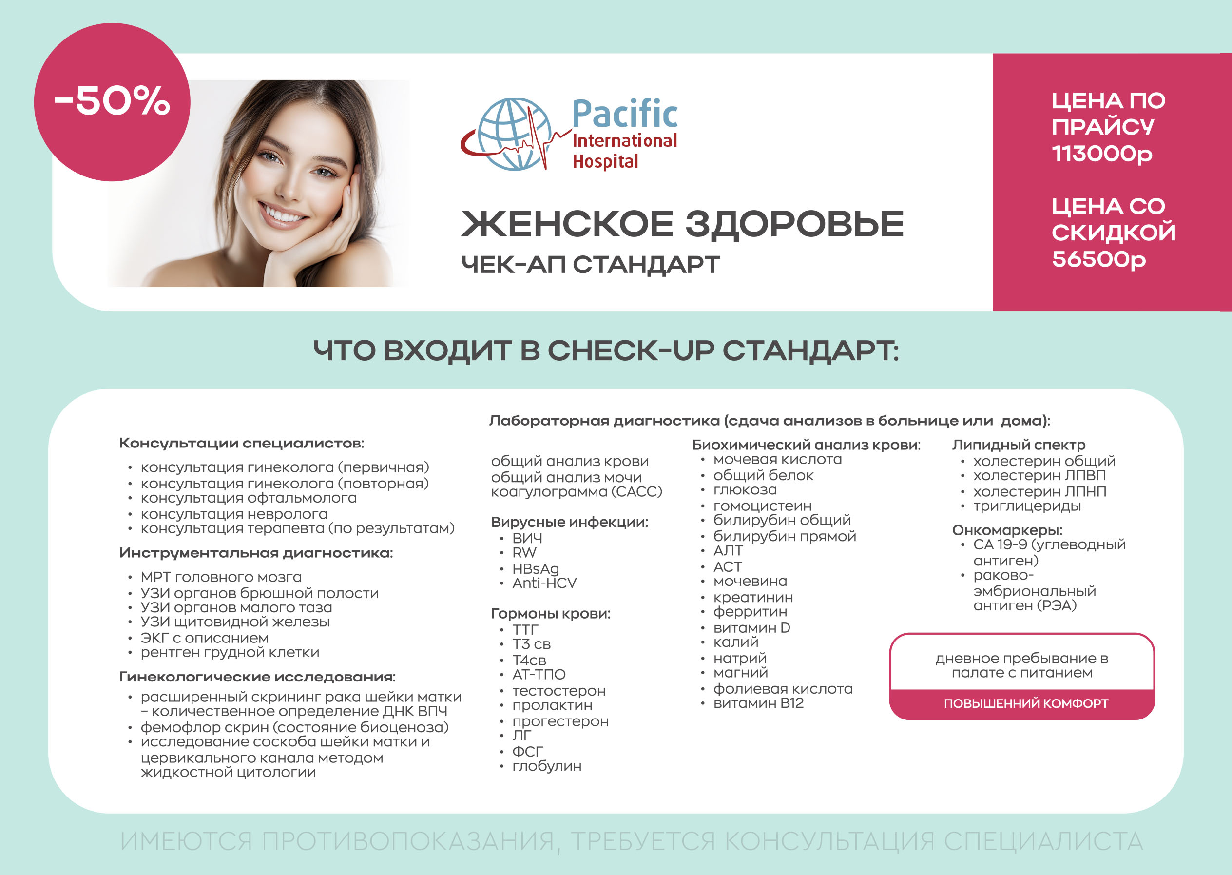 Пакет "Женское здоровье.СТАНДАРТ" : 56500Р вместо 113000Р