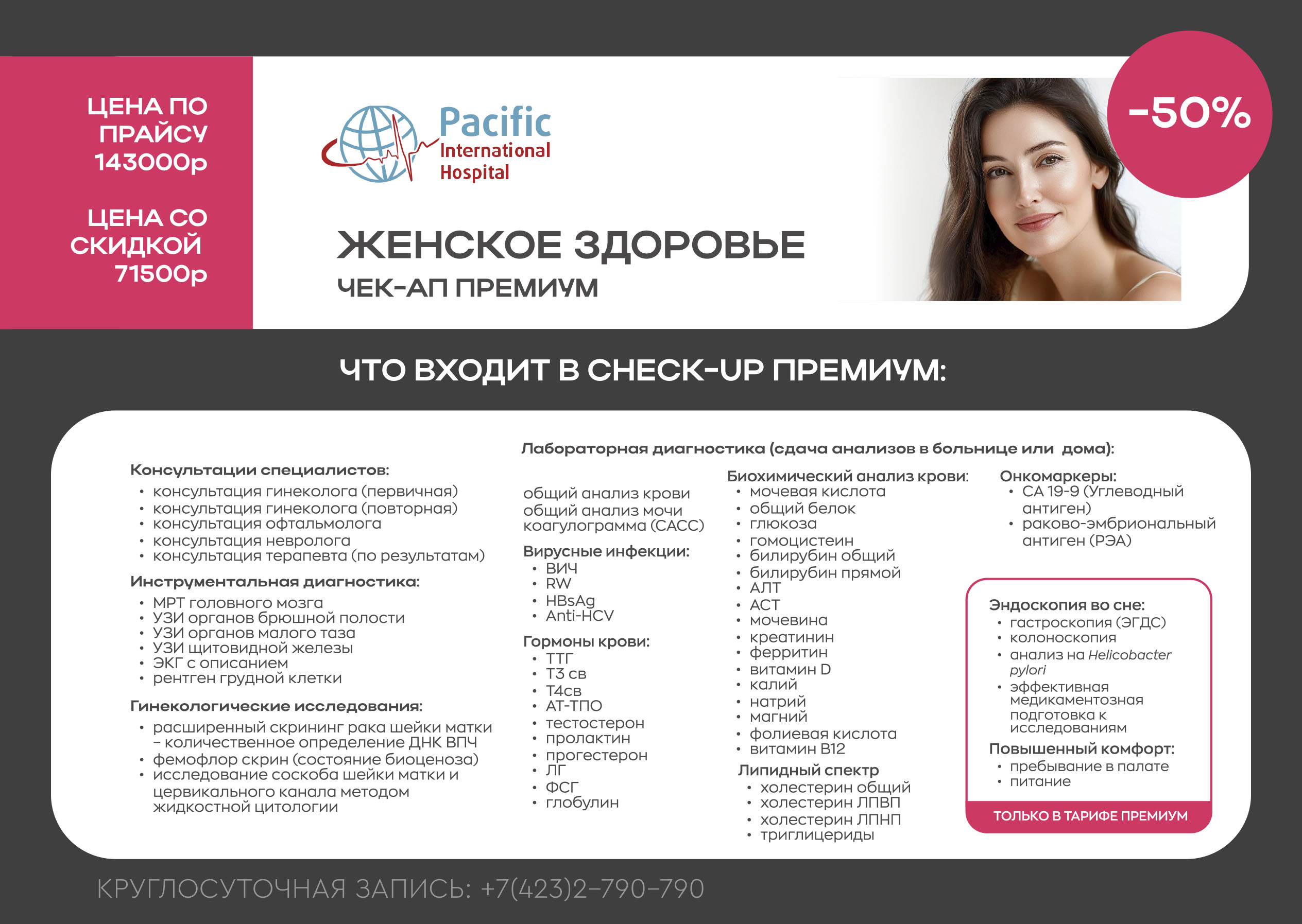Пакет "Женское здоровье. ПРЕМИУМ": 71500Р вместо 143000Р